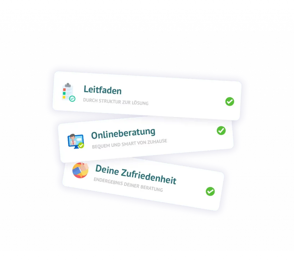 Mit unserem speziellen Leitfaden finden wir für genau deine Situation die passende Lösung. Dabei fokussieren wir uns individuell auf dich, deine Wünsche und Ziele und worauf es speziell in deiner Situation ankommt.